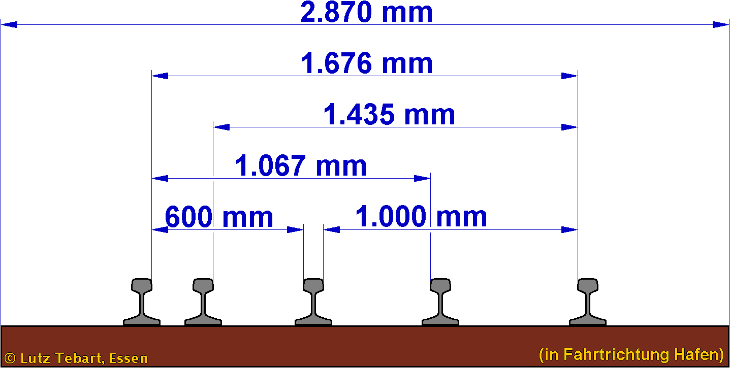 Spurweiten ergeben. Dieses Gleis existiert weitgehend bis heute.