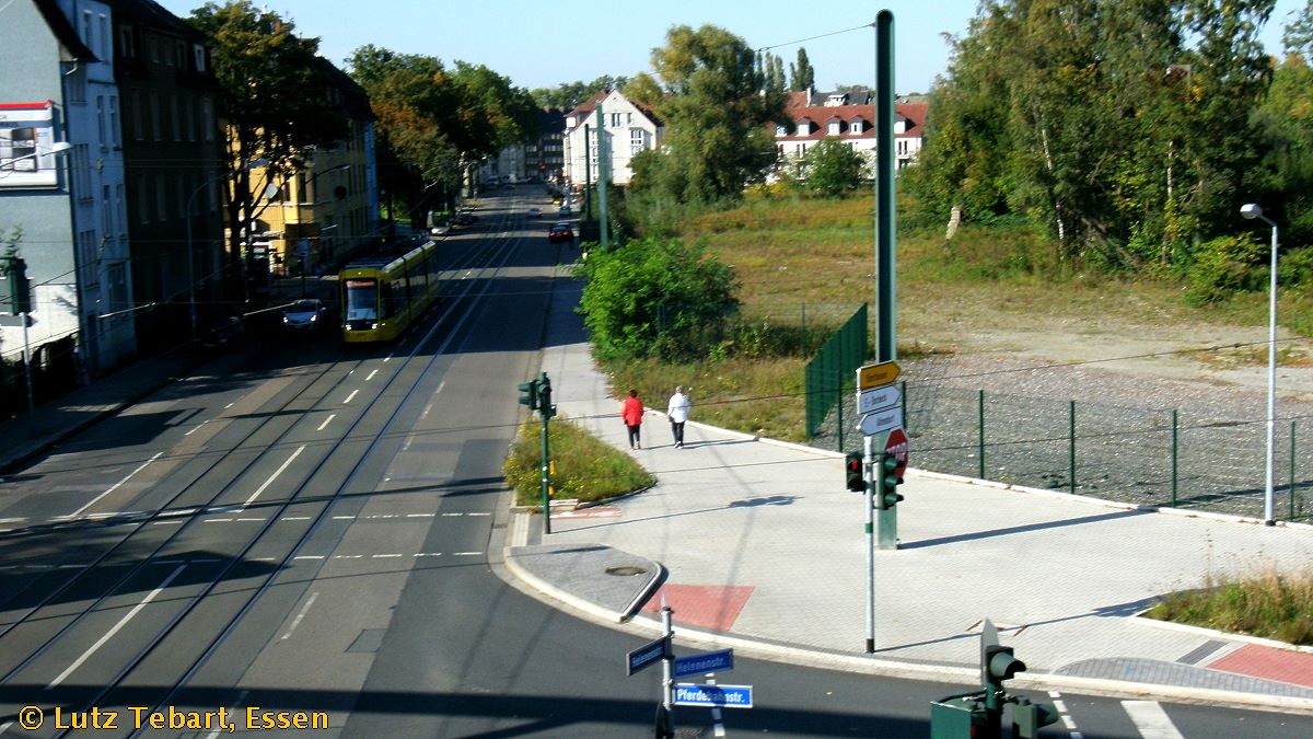rechts des Berthold-Beitz-Boulevard, ein Stück vor der Kreuzung Pferdebahnstraße.