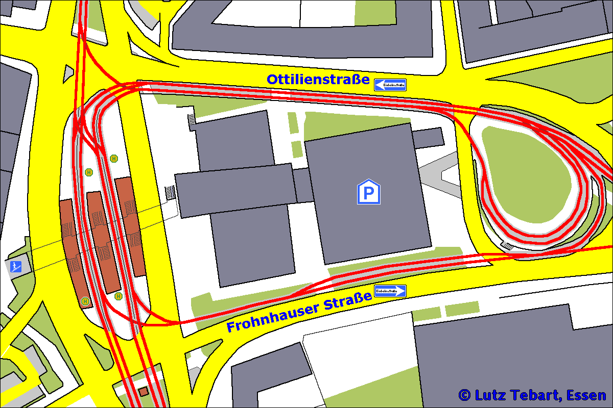 (auf gelber Straße) zu erkennen. Die eingezeichnete Gleislage zwischen Wertstraße und Frintroper Straße