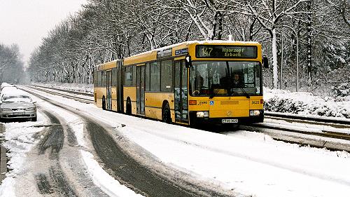 Der Spurbus 3625 im Februar 2004 in der Spurbusstrecke Fulerumer Straße. Er fuhr Richtung Haarzopf und war unmittelbar