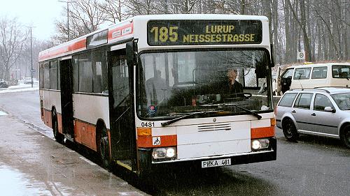 Der Hamburger O 405 mit der Betriebsnummer 0481 und dem Pinneberger Kennzeichen PI-KA 481 am Bahnhof Pinneberg.