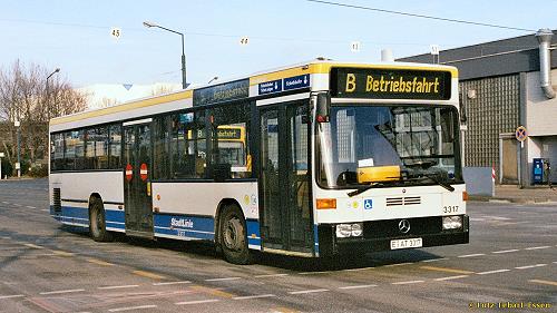 Der Mercedes-Benz O 405 N² der Essener Verkehrs-AG mit der Betriebsnummer 3317. Da Foto habe ich am 17. Januar 2005 im Betriebshof