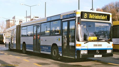 Der EVAG-Spurbus 3773 (O 405 GN) am 23. Januar 2005 im Betriebshof Stadtmitte. Der Bus des Baujahres 1993 wurde von der EVAG noch